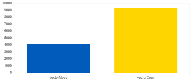 We can see the comparison between these two function below, the values represented in the chart is the time that took to execute the function in comparison with the simplest CPU instruction (noop – no operation). Now we see the performance difference between moving and copying a vector with 10000 allocated integers.